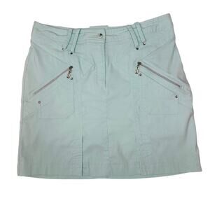 Jamie Sadock Golf Skirt with Undershorts and Pockets. Pale mint green. Nylon/rayon/elastane blend. Two front zip pockets and one back zip pocket. Full stretch undershort liner. Zip and button fly. Womens size 6. Good used condition.