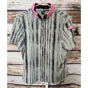 Jamie Sadock Gray Black Pink 1/4 Zip Short Sleeve Golf Shirt Small. In very good condition with no stains or tears. See photos for details. I ship on the same or next day from a smoke-free home. I make every effort to describe items honestly and price them fairly. Feel free to make an offer or ask any questions. Im happy to help.