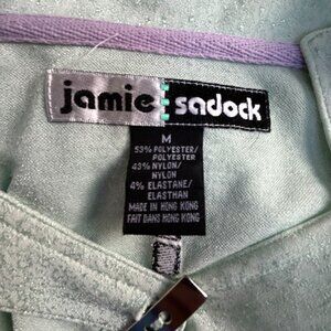 Jamie Sadock Green Sparkly Short Sleeve Golf Polo Shirt Top Medium Unique Collar