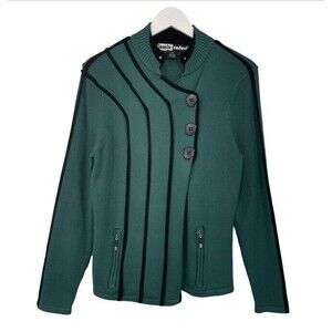 Jamie Sadock Jacket Medium Long Sleeve Sweater Knit Green Modern Golf Medium EUC