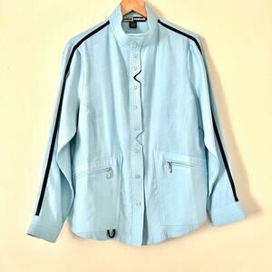 Jamie Sadock Light Baby Blue Golf Tennis Jacket Snap Coat Medium Zip Pockets