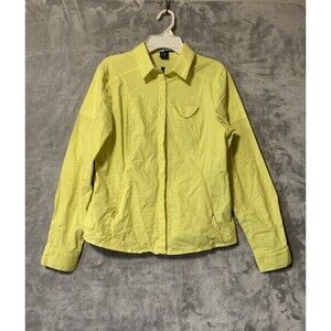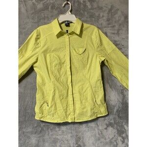 Good pre-owned condition. Square buttons, button up, collar, long sleeve, bright sunshiny yellow. Spring, summer. Quick shipping. Thanks for looking! Measurements chest 17 1/2, length 23.