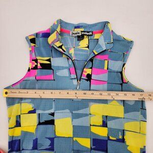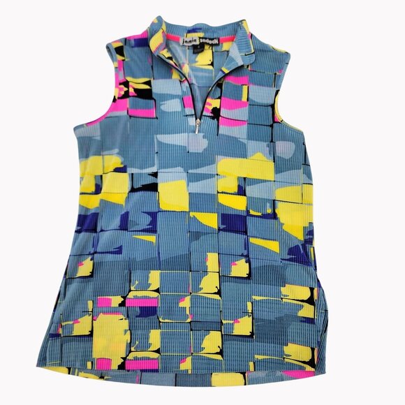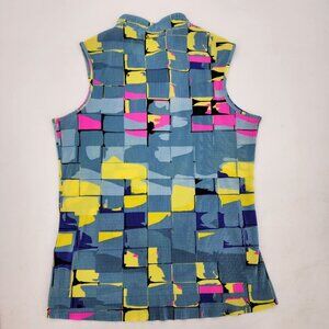 Jamie Sadock Womens Size M Blue Abstract Sleeveless Zip Polo Top Accordion