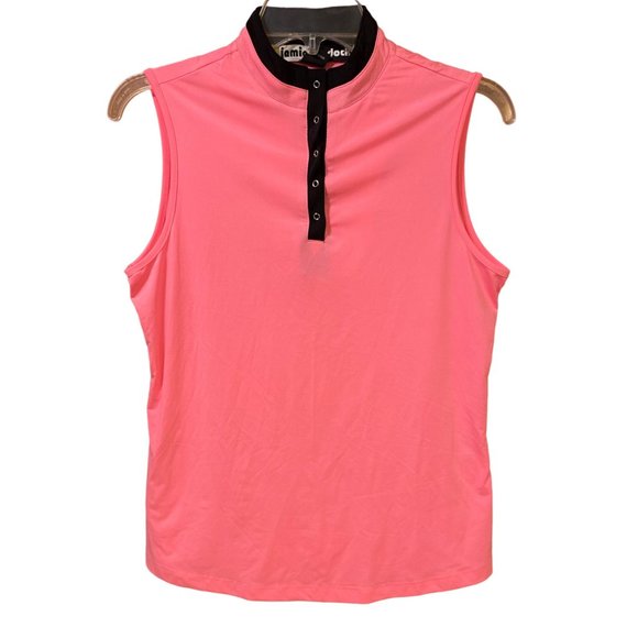 Jamie Sadock Women's Small 1/2 Button Sleeveless Top Pink Black