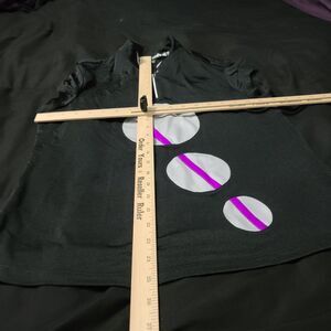 Elevate your wardrobe with the Jamie Sadock Women's Multicolor Top. This size medium, 1/4 zip pullover features a vibrant colorblock pattern and cap sleeves, crafted from a comfortable polyester blend.