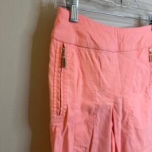 Color is a neon pink/orange color. I would pair with black or white tops. Lots of pockets shown in photos. Smoke free home.