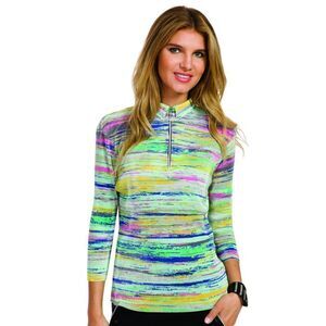 Jamie Sadock 3/4 Sleeve Painters Stripe Polo Size S