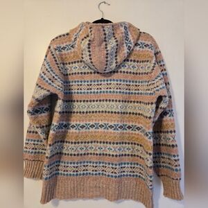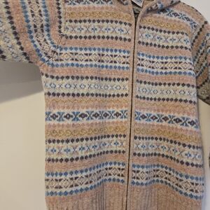 "Jamieson's Scottish Shetland Fair Isle Hoodie Crewneck Sweater Sz XL Pink Wool