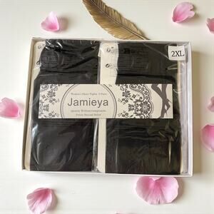 Get ready to add a touch of elegance to your wardrobe with these Jamieya sheer black tights! This listing includes two pairs of brand new tights in size 2XL, complete with a control top for a flattering fit. They come in the original box. Perfect for any occasion. Grab them now!
