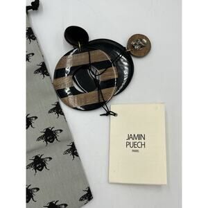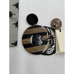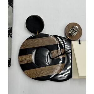 Jamin Puech Anthropologie Door LG Knocker Black Brown Faux Wood Clip Earring NEW