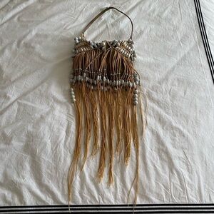 Stunning mini purse! Tan tassel fringe in different lengths! Has light blue beading all over. Comes with dustbag- super unique. Like new