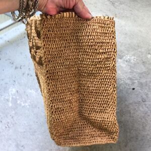 Check out the pictures. This is a beautiful bag that is in perfect condition. Inside is clean. Measuring across the bottom is 15 x 11 x 6 with a handle drops of 8