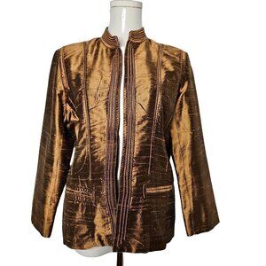 Jami's Contemporary Silk Jacket Medium Open Front Brown Designer Elegant Luxury