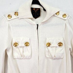 Jamison Cardigan Sweater Size XS Full Zip Gold Button Details Pockets Ivory