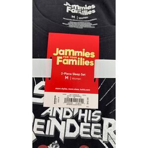 Jammies For Your Families Santa And His Reindeer Pajama Set Womens Medium Black