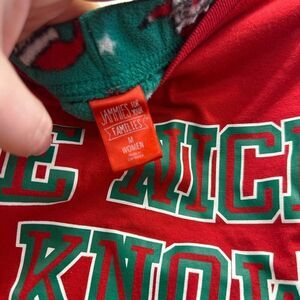 Jammies Ladies Med Red Long Sleeeve " I KNow Santa"