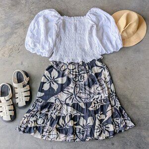 Jams World Black Ivory Sandshell Floral Tiered Mini Skirt large