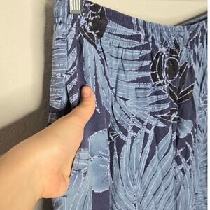 Jams World Blue Floral Palm Print Pull-on Drawstring Pants Women's Large