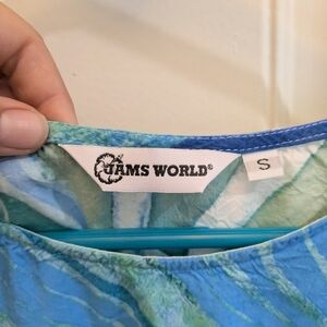 Colorful dress with a dynamic blue and green design. Ideal for casual wear.