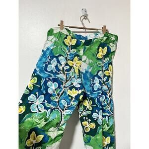 Jams World Butterfly Colorful Pants Size XS Blue Hawaiian Crackle Print Tropical