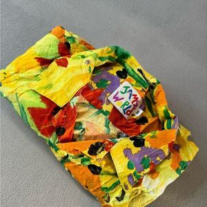 Jams World Button Up Top Multi Color Floral Short Sleeve Blouse size M