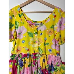Jams World Floral Colorful Short Sleeve Mini Dress / Tunic Top Size M Arsty