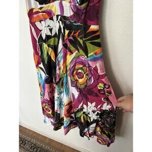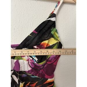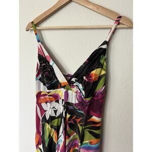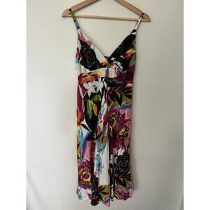 Jams World Floral Hawaiian Midi Dress Empire Waist Womens Size Large Vtg Flowy