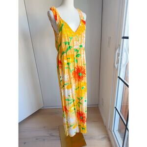 Jams World Floral Maxi Dress Small Yellow Green Coastal Vacation Full Length