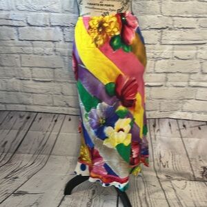Jams World Floral Skirt Tropical Hawaiian Ruffle Midi Size Medium Colorful