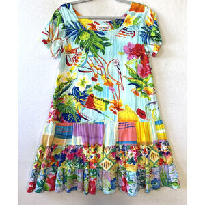 Jams World Hattie Dress Island Life Womans Size M Tiered Hawaiian Floral Aloha
