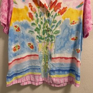The Jams World Kiyoshi Large Button Up Style W624- ROSS,multicolor rose print on rayon material.