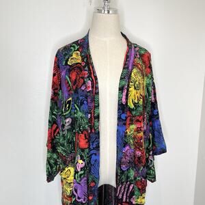 Jams World Open Front Kimono Jacket One Size Dark Floral Duster