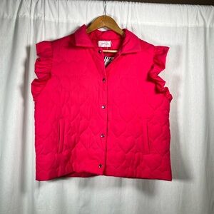 Add a pop of color with this vibrant pink button-down shirt from Jams World. Features charming ruffled sleeves and a playful heart pattern.