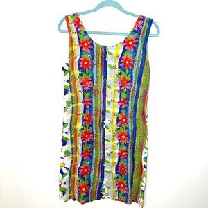 Jams World Shift Dress Womens Size 11 Vintage Sea Daisy Print Back Zip Pockets