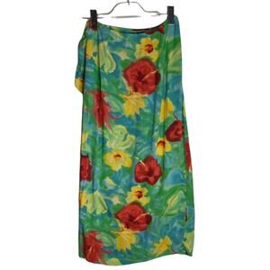 Jams World Vintage 80's Wrap Skirt Royal Hibiscus Print Size M 100% Rayon