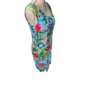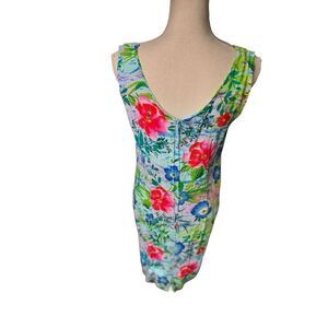 Jams World Vintage 90s Sheath Dress 3 Blue Palm Print Sleeveless Sheath Short