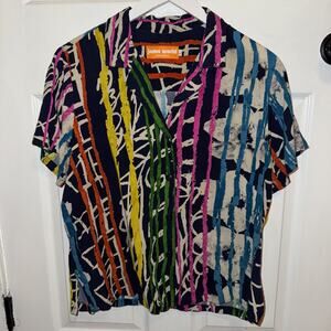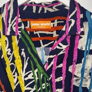 Jams World Women's Large Blouse V-Neck Hawaiian Multi-Color Heartstrings L