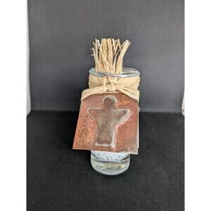 Jan Barboglio Adelita House Blessing Clear Glass Angel w Iron Flower Candle New
