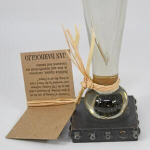 Jan Barboglio Hand Blown Glass Champagne Flute Vase Forged Iron Base w/ Tags 9”