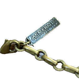 Jan Michael Signed Choker Rope Mesh Pendant Necklace in Golden Bronze & Silver tone metals. A vintage piece from the late 20th century. This adjustable necklace features a round pendant on a double strand mesh chain type necklace with lobster clasp and logo tag. Perfect for women who appreciate an artisan made Brutalist design style. This unique necklace will make a standout addition for any outfit. In good vintage condition - minor surface wear but no significant damage and no flaws - just stunning!