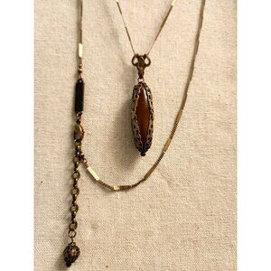 Jan Michaels Victorian Revival Style Pendant Necklace Carnelian Stone Signed