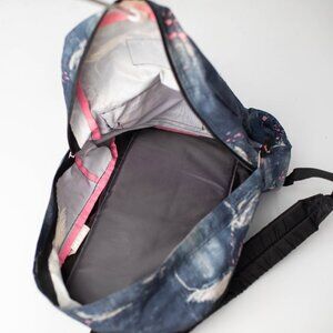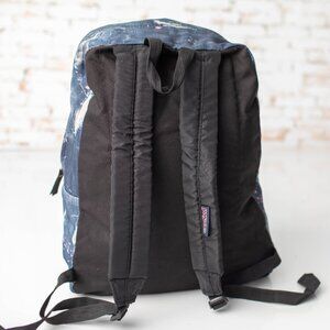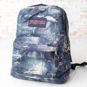 Stand out with this unique JanSport backpack featuring a distressed denim-style print with pink paint splatter details. Built with JanSport’s signature durability, it’s perfect for school, travel, or everyday adventures. Lightweight yet spacious with a large main compartment and a convenient front utility pocket.