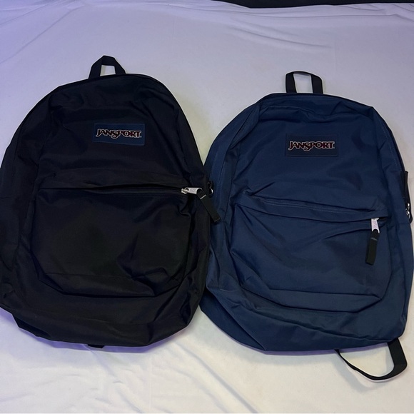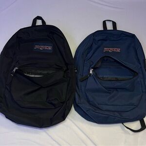 Set of 2 classic style jansport backpacks. Black one was used once, the blue was never used.