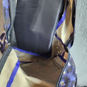 The JanSport Big Student Backpack in Navy Purple with a Black Aztec Pattern is a stylish and functional bag perfect for school, work, or play. Made from a durable polyester blend material, this unisex kids backpack features a spacious interior with dimensions of 13 inches in width, 16 inches in height, and 6 inches in depth. The Aztec theme adds a unique and trendy touch to the classic blue color, making it a standout accessory for any outfit. Ideal for carrying books, laptops, or other essentials, this backpack is both practical and fashionable for everyday use.