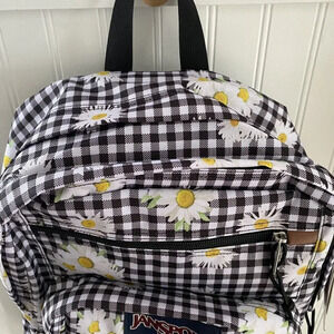 JanSport Daisy Mae Cool Student 17.5" Backpack Flower Gingham Laptop Pocket NEW