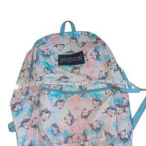 Charming JanSport backpack with unicorn pattern. Ideal for school or outings. Stylish and practical. has a few stains as pictured. no rips or tears.