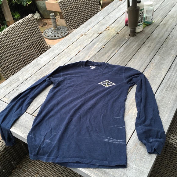 This long sleeve tee shirt is navy blue. It is made by janSport. It has a diamond shaped framed University of California Santa CruzBananaSlugs logo on the front. It is a small.