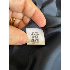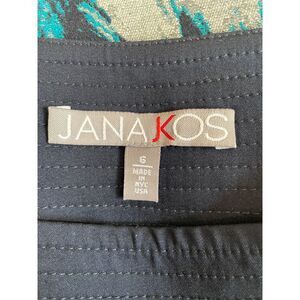 Jana Kos blue and gray abstract print skirt in size 6. NYC based designer Jana Kos is known for arty high-quality clothing. This beautiful tulip shaped skirt has a wide navy blue waist band, with the skirt fashioned from a wool blend fabric in shades of blue, gray and teal. Lightweight fabric, side zip, fully lined-great for transitioning to cooler weather. Excellent used condition, non-smoking home.