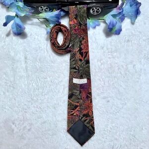 Excellent condition. Multi color "Rainforest" theme 100% silk tie. No care tag. Foreign brand. Pictures are part of description.