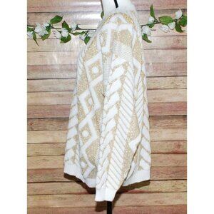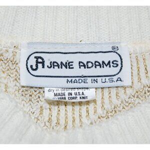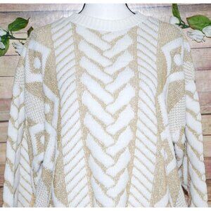 Jane Adams White And Gold Metallic Pullover Sweater Size XL Crewneck